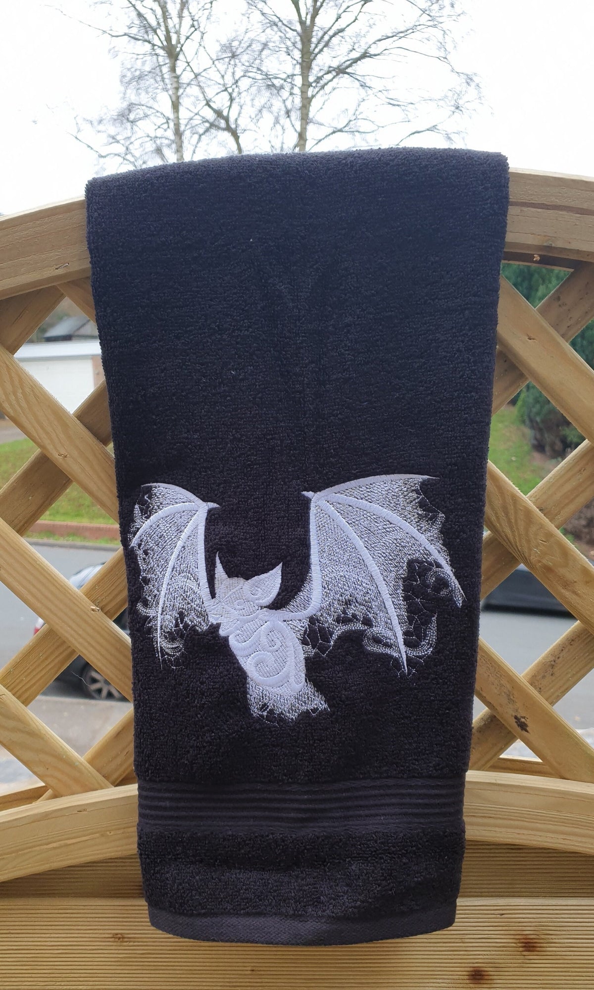 Bat Embroidery Hand Towel: Gothic Halloween Bathroom Decor